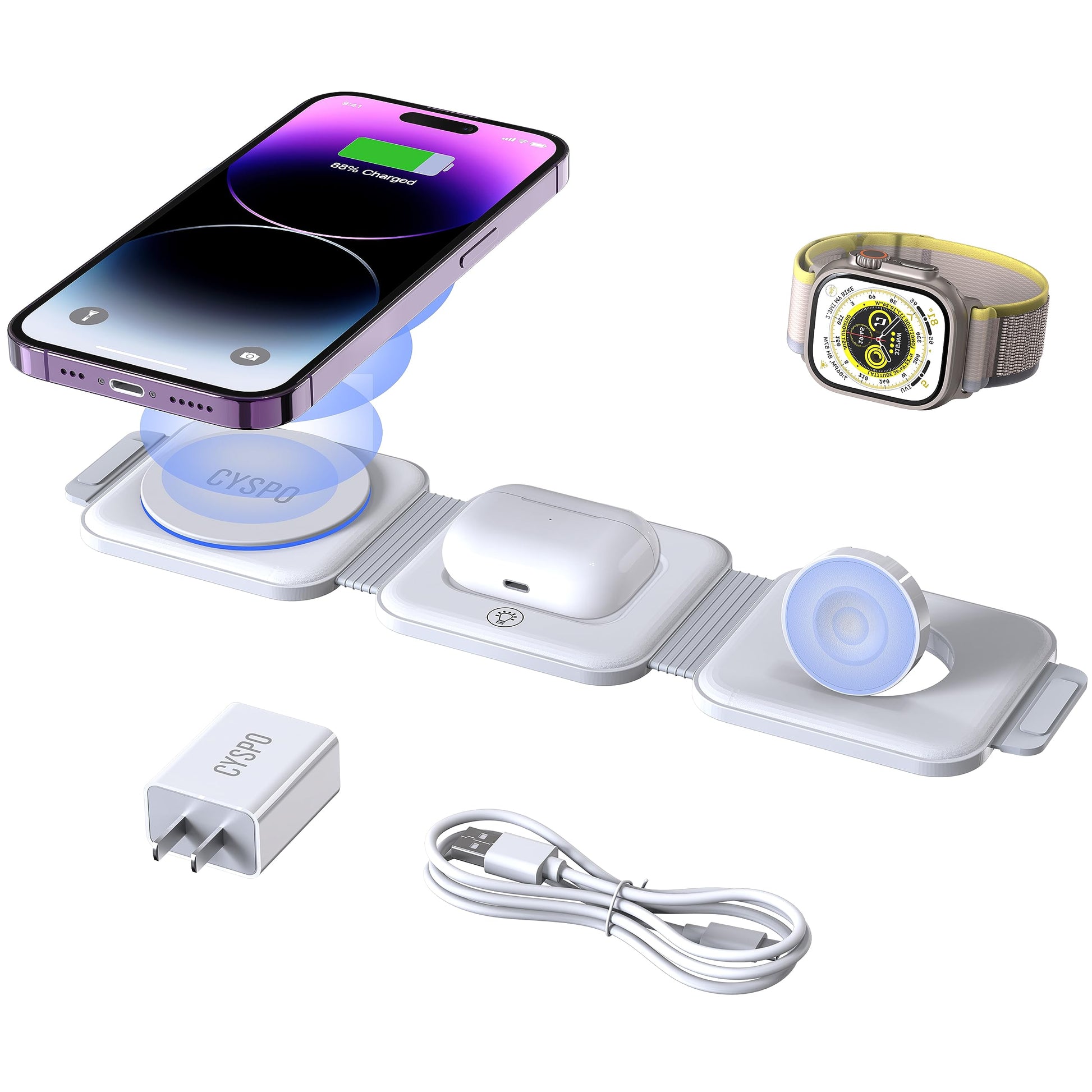 ✅Puede cargar hasta 3 dispositivos al mismo tiempo: IPhone , AirPods y Apple Watch
